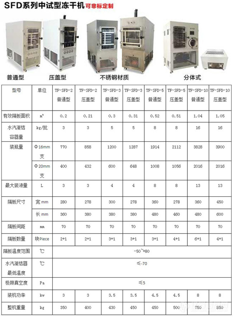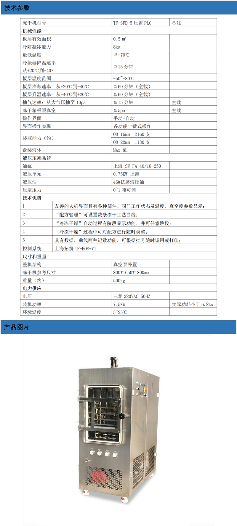 壓蓋型真空冷凍干燥機TF-SFD-10此款真空冷凍干燥機是上
